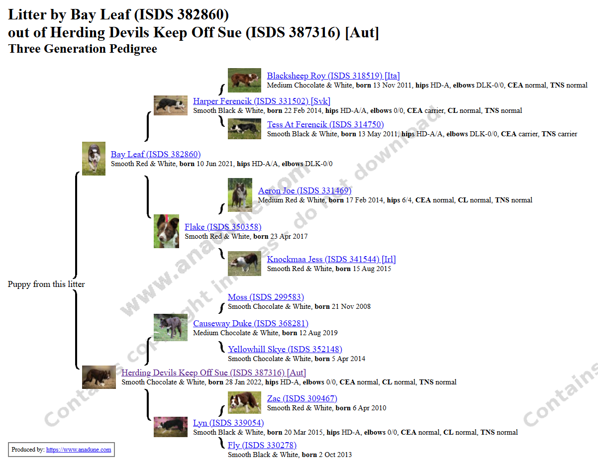 Von dieser Verpaarung aus Sue und Bay erwarte ich leistungsfähige und gesunde Welpen für das Hüten am Vieh und diverse Hundesportarten.